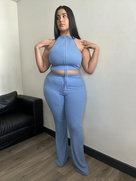 Day By Day Ribbed Crop Top and Bootcut Co-Ord